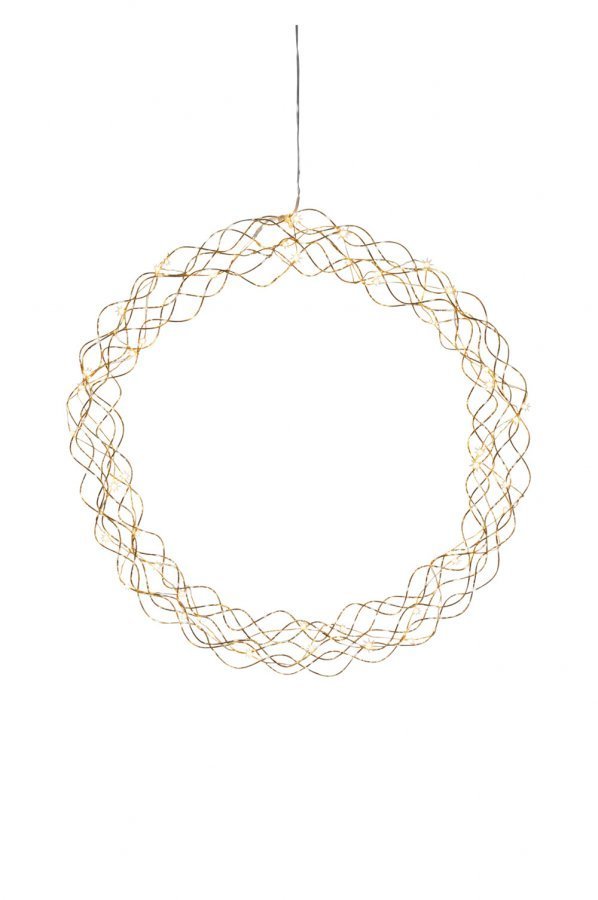 Kaunis ripustettava kranssi. Koko 45×45 cm. 50 LED-lamppua (eivät vaihdettavissa). 3,5 m:n johto.