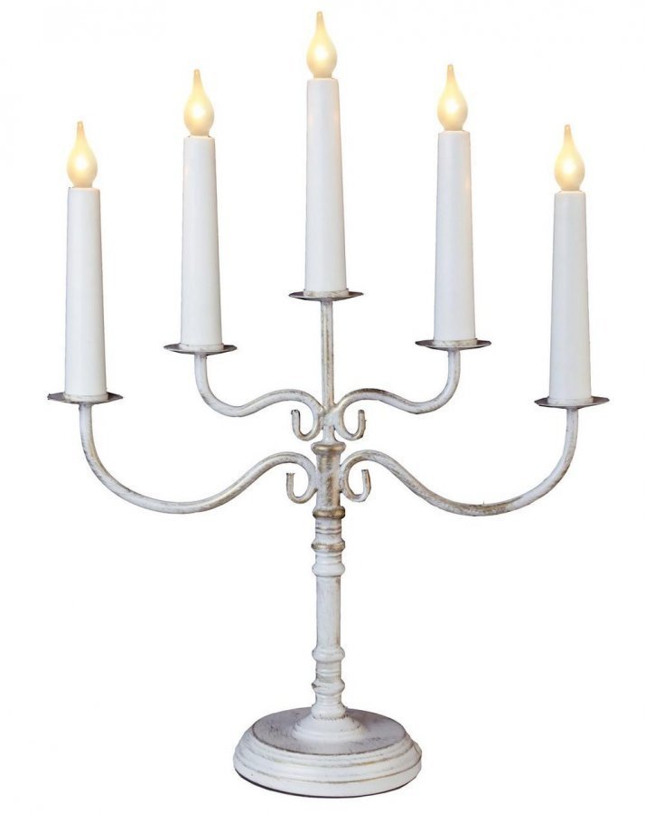 Metallinen, shabby chic -tyylinen Romantika-sähkökynttelikkö. Korkeus 50 cm. Syvyys 13,5 cm. Leveys 37 cm. 1,8 m:n johto, jossa virtakatkaisin.
