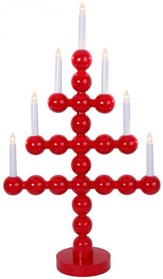 Mitat: Leveys 43 cm. Syvyys 15 cm. Korkeus 72,5 cm. Joulupallot kiiltävää puuta, LED-lamput. 230 V 1,8 m johto.