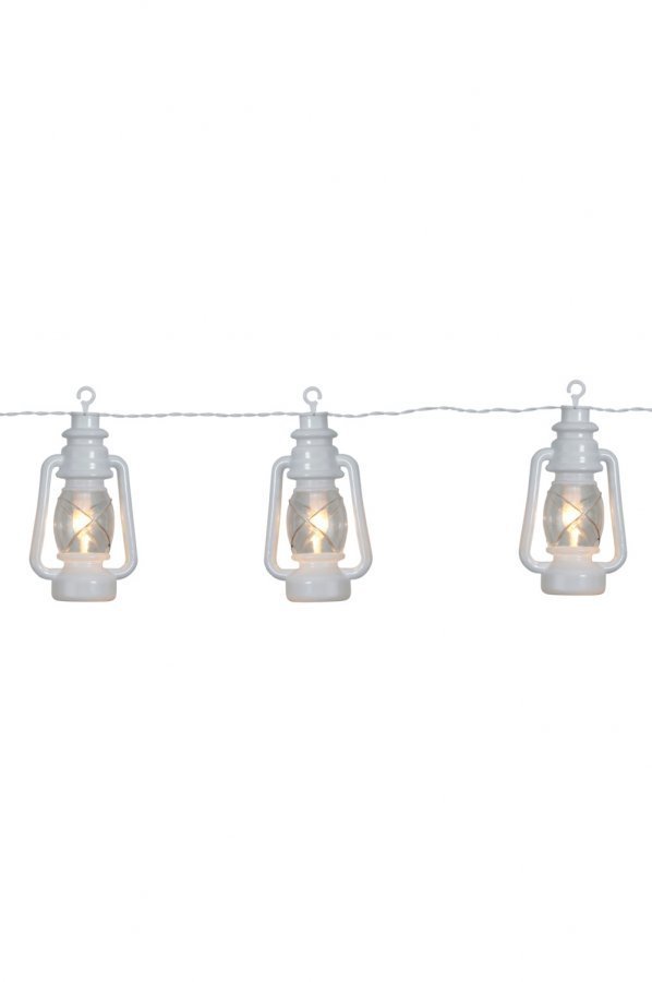 Valoköynnös, jossa on 8 valkoista öljylamppua. Täydellinen ulos terassille ja puutarhaan ihanaksi sisustuselementiksi. Köynnöksessä on 8 LED-valoa.