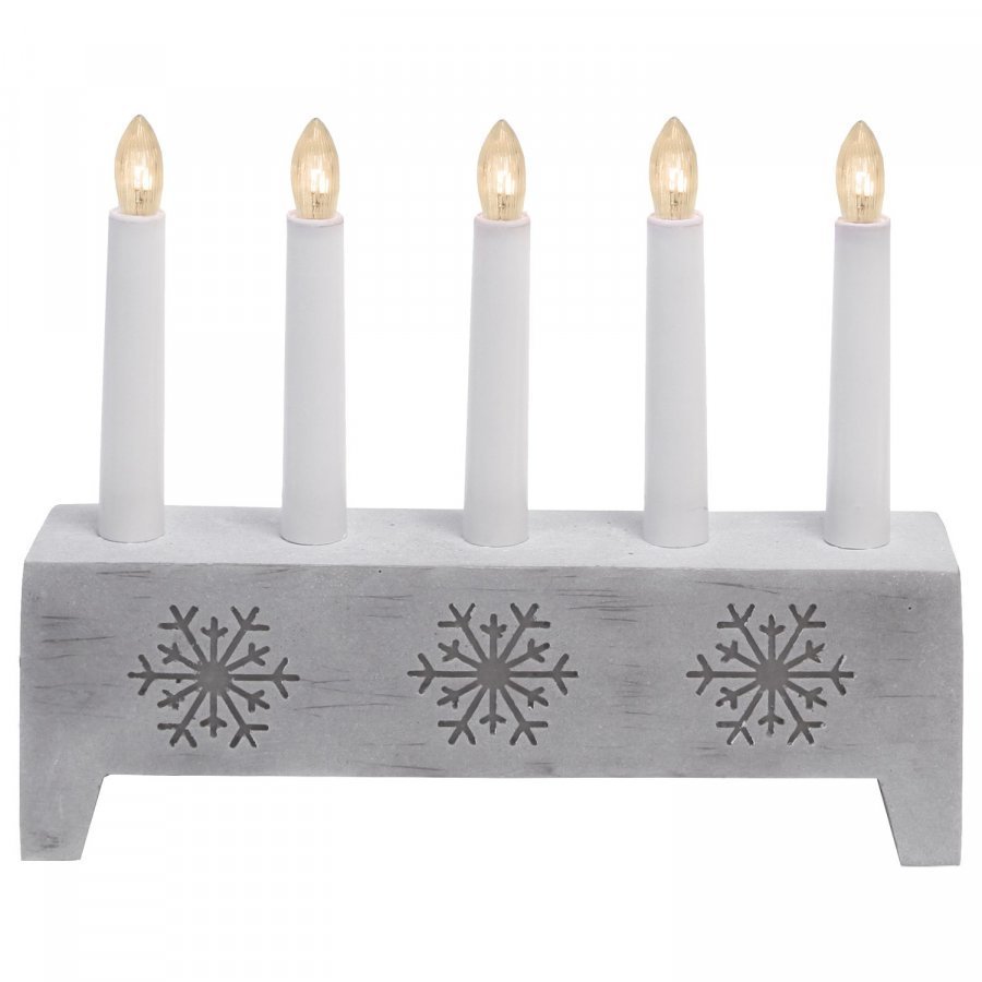 Snowflake kynttelikkö, Star Trading. Vähän erilainen betoninen kynttelikkö. Jykevä mutta kaunis. Kynttelikkö on koristeltu kolmella lumihiutaleella jotka nostaa joulutunnelman kattoon. Viisi koristeellista lamppua luovat tunnelmaa ja kynttelikkö on yhtä kaunis ikkunalla kuin joulupöydällä. Kynttelikkö ainoastaan sisäkäyttöön, IP20.