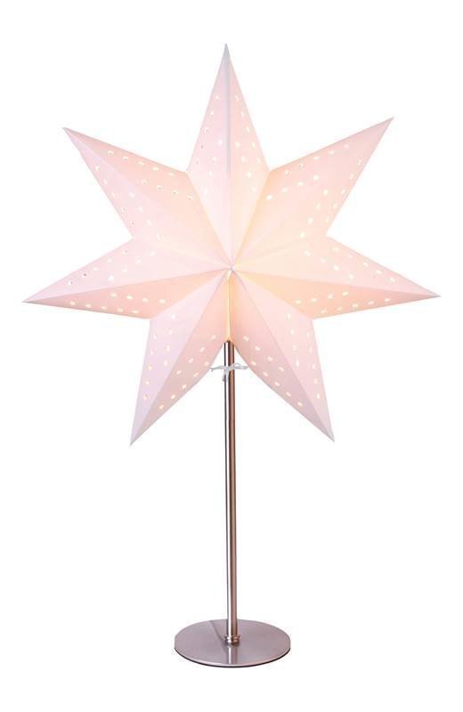 Metallijalusta ja vahva pahvitähti. Kokonaiskorkeus 50 cm. Halkaisija 34 cm. Lampunkanta E14…. Lue lisää »