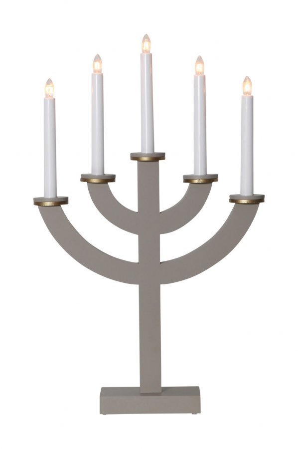 5-haarainen, puinen kynttelikkö. Metalliyksityiskohdat antavat kynttelikölle modernin ilmeen. Tyylikäs kynttelikkö sopii kaikkiin koteihin. Leveys 33, korkeus 53 cm, syvyys 8 cm. 1,8 m:n johto, jossa virtakytkin.
