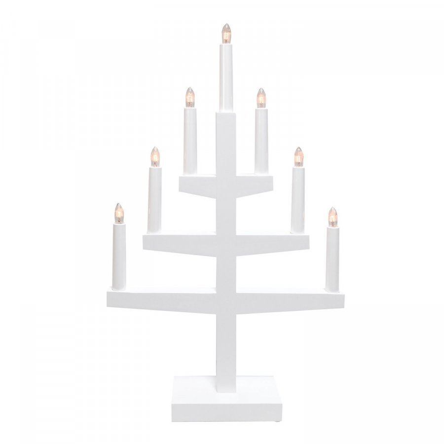 Trapp kynttelikkö, Star Trading. Tyylikäs ja jykevä puinen kynttelikkö, joka takuulla luo joulutunnelmaa. Tämä valkoinen puukynttelikkö on koristettu seitsemällä E6 lampulla. Tunnelmallinen ikkunalla mutta sopii yhtä hyvin pöydälle tai lipastolle ja tulee takuuvarmasti olemaan suursuosikki joulun aikaan. Kynttelikkö ainoastaan sisäkäyttöön, IP20.