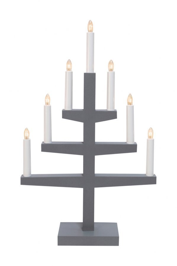 Puinen Trapp-sähkökynttelikkö. Korkeus 53,5 cm. Syvyys 3 cm. Leveys 33,5 cm. 1,8 m:n virtajohto, jossa katkaisin.