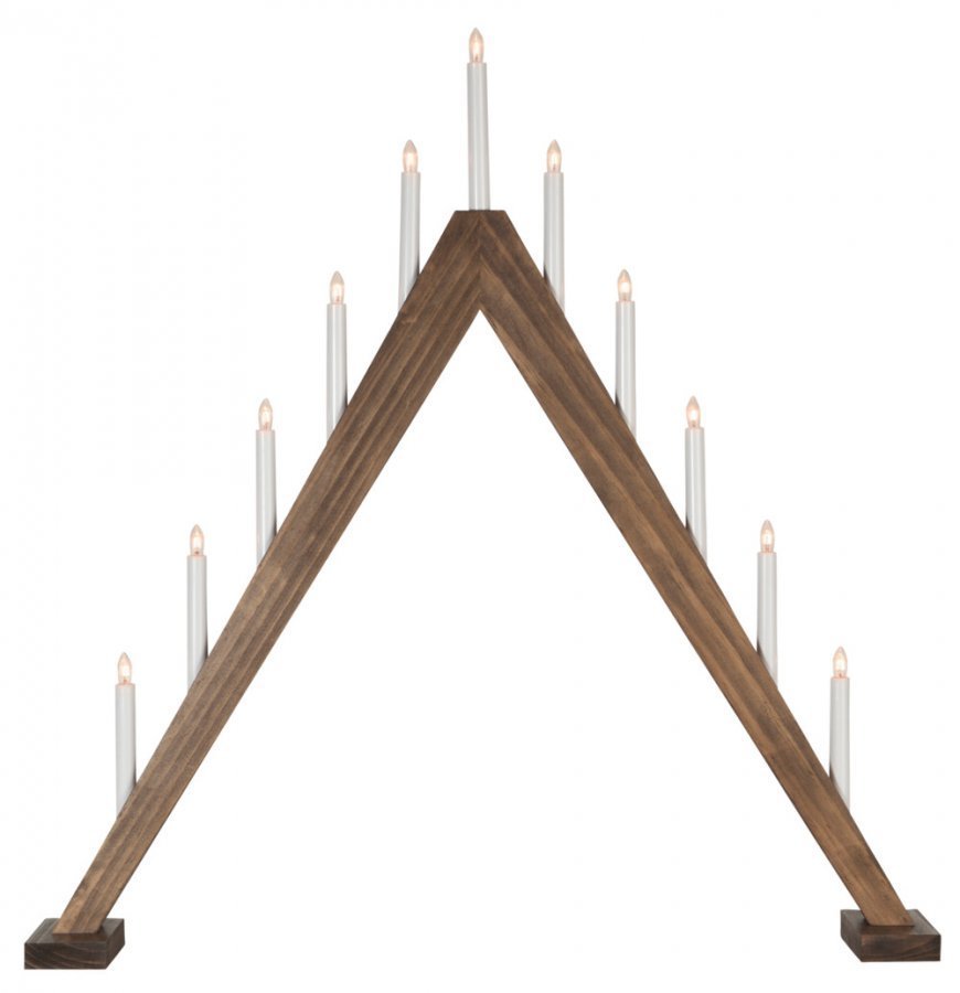 Puinen sähkökynttelikkö, jossa 11 LED-lamppua. Pöydälle tai ikkunaan asetettu kynttelikkö luo jouluista tunnelmaa. Leveys 78, korkeus 79 cm, syvyys 10 cm. 1,8 m johto, jossa virtakytkin.