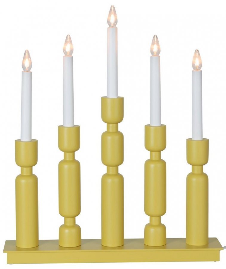 Puinen Uddebo-sähkökynttelikkö, jossa 5 linjakasta, kirkasta LED-lamppua. Korkeus 44 cm. Syvyys 7,5 cm. Leveys 37 cm. 1,8 m:n johto, jossa virtakatkaisin.