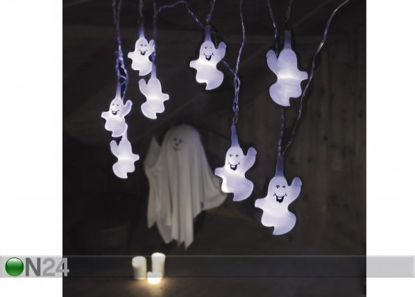 LED valoketju, jossa kummitusmuotoiset valot – ketjussa on kahdeksan led valoa – johdon… Lue lisää »