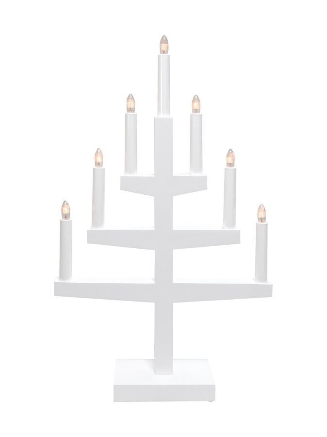 Klassisessa kynttelikössä on seitsemän kynttilää ja 1,8 metrin mittainen johto virtakatkaisimella. Kynttelikkö toimii verkkovirralla.Materiaali on puuta.