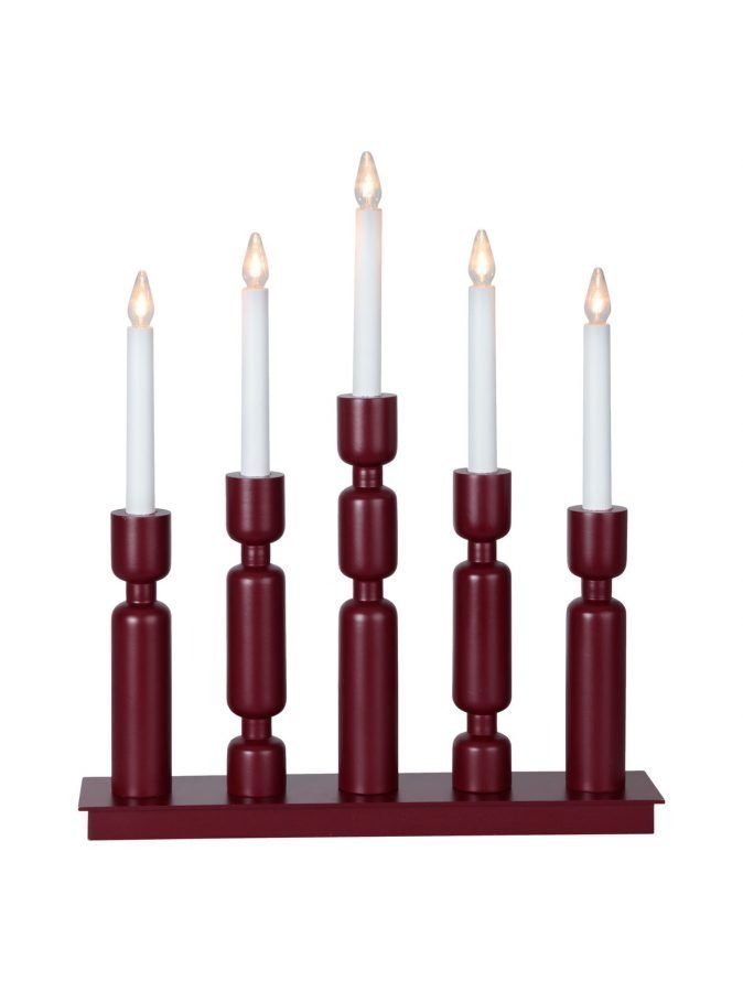 Kaunis kynttelikkö luo valaistuksellaan joulun tunnelmaa. Kynttelikössä on 5 LED-lamppua ja 1,8 metrin pituinen johto käytännöllisellä katkaisijalla.