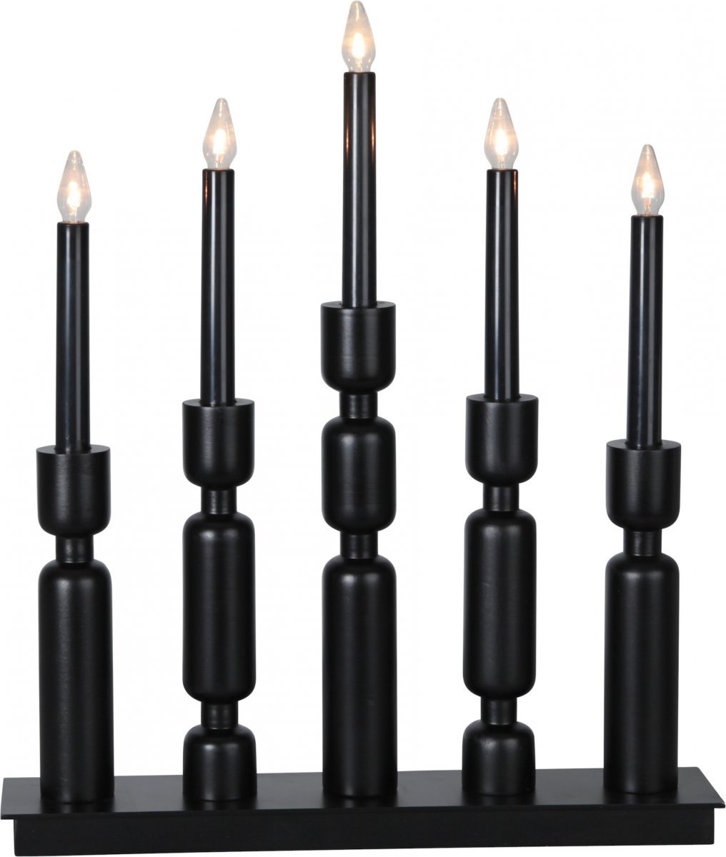 Puinen 5-haarainen kynttelikkö LED-lampuilla.