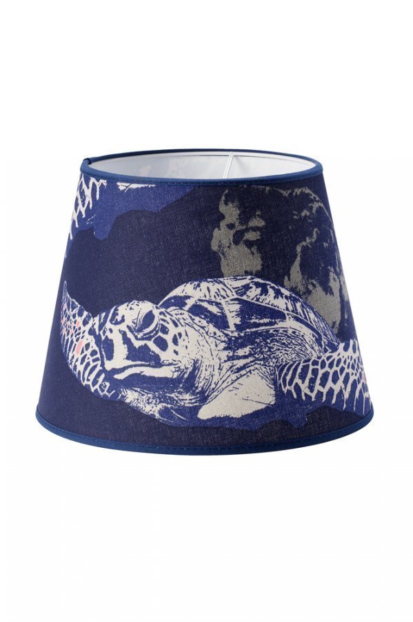 Lampunvarjostin kangasta (puolipellavaa). Alareunan halkaisija: 25 cm. Korkeus: 19 cm. Kiinnike: painetaan kiinni hehkulamppuun. Varjostin sopii pöytävalaisimeen.