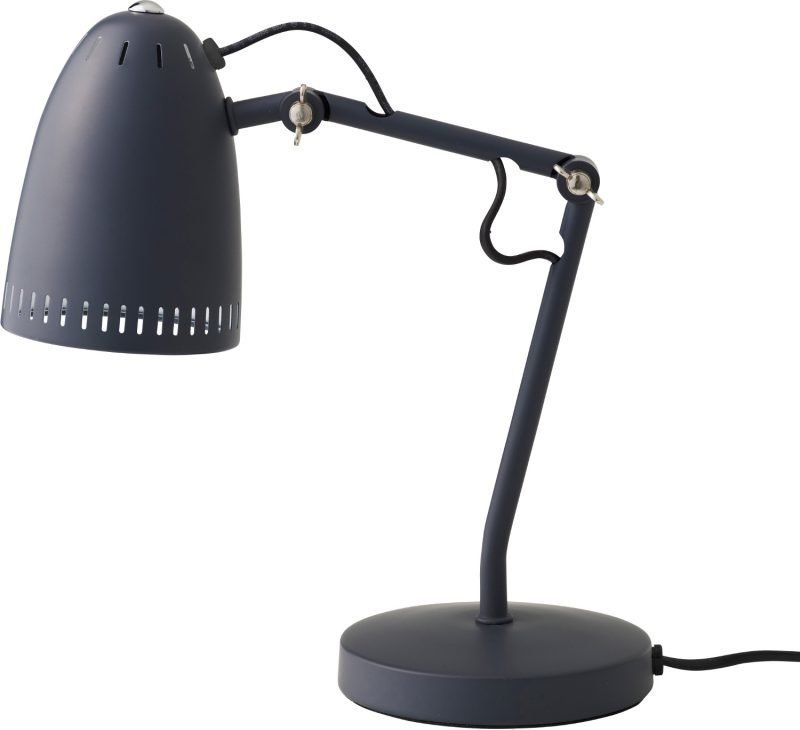 Täydennä sisustusta Superlivingin tyylipuhtaalla Dynamo-pöytävalaisimella, joka sopii niin lastenhuoneeseen kuin olohuoneeseen tai eteiseen. Valaisimen varjostin on mustaksi maalattua metallia ja reiitetty reuna suodattaa valoa kauniisti. Valaisimen modernissa muotoilussa on aavistus retrohenkeä. Saatavissa eri värejä. Materiaali: maalattu metalli Korkeus: 40 cm Varjostimen ympärysmitta: 11 cm Jalan ympärysmitta: 14,5 cm Johto: 2 m Valonlähde: E15 max. 42W Valaisimeen sopivat lamput, joiden energialuokka on: A++-E