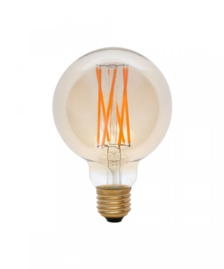 Design: Tala. Konsepti: Elvalla on sama kauneus ja toimivuus kuin vanhemmalla siskollaan Gaialla, mutta huomattavasti kompaktimmassa koossa. Saatavana läpinäkyvänä ja värillisenä versiona. Tala-kokoelman valaisimista tämä lamppu sopii täydellisesti Brass -riippuvalaisimeen. Feature-kokoelman tarkoituksena on ”tehdä valaistuksesta kokemus”. Tämä on saatu aikaan haastamalla ajatusta, jonka mukaan lampun tarkoitus on vain toimia lähteenä, joka luo valoa. Yksilöllisten muotoisten lamppujen kokoelma yhdistettynä monimutkaisiin LED-filamentteihin tekee Tala Featuresta ainutlaatuisen koristeellisten valonlähteiden kokoelman. Jokainen lamppu on huolellisesti kalibroitu luomaan lämmin ja kutsuva tunnelma. LED lamppu, jota voi himmentää. Tarjoaa 480 lm, mikä vastaa noin 40-60W. Lampun lämmin valo 2200 kelvinillä ja RA-indeksi on 95, mikä tarkoittaa, että sen värintoistokyky on optimaalinen. Jos sinusta tuntuu, että on vaikea ymmärtää lamppujen teknisiä asioita, tässä tulee pieni selvennys tärkeimmistä asioista, jotka sinun olisi hyvä huomioida. Tänä päivänä valon määrä ilmaistaan Lumen-arvona Watin sijasta. Karkeistettuna voit seurata seuraavia vastaavuuksia. 15W = 140 lumen. 25W = 250 lumen. 40W = 470 lumen. 60W = 800 lumen. 75W = 1050 lumen. 100W = 1520 lumen. Lisäksi voidaan tarkastella RA tai CRI -arvoa. Tämä ilmaisee valon kykyä tuottaa värejä skaalalla 0-100 RA. 100 RA tarjoaa parhaan värintoiston, ja se on mitä päivänvalo tarjoaa. Yleisesti kotiin tulisi valita lamppu, jonka RA-arvo on enemmän kuin 80. On myös hyvä tarkastella Kelvin-arvoa. Kelvin ilmaisee lampun värilämpötilaa, eli värisävyä. Lamppu, jonka Kelvinaste on 2.700-3.000, on värisävyltään lämmin. 4.000-4.500 antaa neutraalista kylmähkön valon ja on optimaalisin värilämpötila työskentelyyn. Jos kaipaat enemmän energiaa talven pimeinä kuukausina, on paras Kelvin-arvo tällöin yli 6.000. Jos haluat lukea lisää lampuista, saat lisää informaatiota täältä.