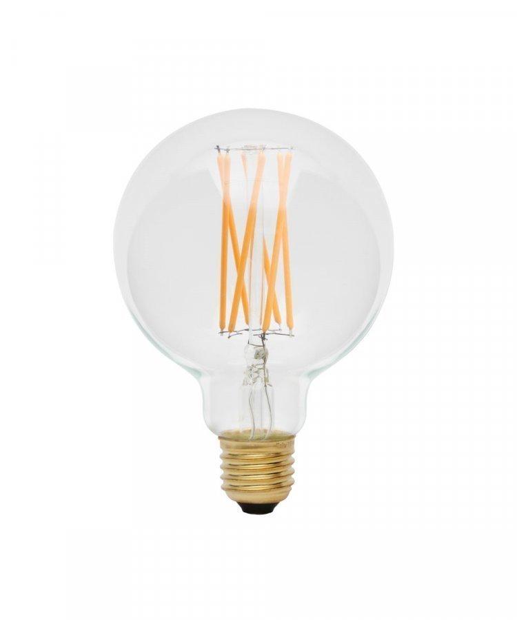 Design: Tala. Konsepti: Elvalla on sama kauneus ja toimivuus kuin vanhemmalla siskollaan Gaialla, mutta huomattavasti kompaktimmassa koossa. Saatavana läpinäkyvänä ja värillisenä versiona. Tala-kokoelman valaisimista tämä lamppu sopii täydellisesti Brass -riippuvalaisimeen. Feature-kokoelman tarkoituksena on ”tehdä valaistuksesta kokemus”. Tämä on saatu aikaan haastamalla ajatusta, jonka mukaan lampun tarkoitus on vain toimia lähteenä, joka luo valoa. Yksilöllisten muotoisten lamppujen kokoelma yhdistettynä monimutkaisiin LED-filamentteihin tekee Tala Featuresta ainutlaatuisen koristeellisten valonlähteiden kokoelman. Jokainen lamppu on huolellisesti kalibroitu luomaan lämmin ja kutsuva tunnelma. LED lamppu, jota voi himmentää. Tarjoaa 480 lm, mikä vastaa noin 40-60W. Lampun lämmin valo 2200 kelvinillä ja RA-indeksi on 95, mikä tarkoittaa, että sen värintoistokyky on optimaalinen. Jos sinusta tuntuu, että on vaikea ymmärtää lamppujen teknisiä asioita, tässä tulee pieni selvennys tärkeimmistä asioista, jotka sinun olisi hyvä huomioida. Tänä päivänä valon määrä ilmaistaan Lumen-arvona Watin sijasta. Karkeistettuna voit seurata seuraavia vastaavuuksia. 15W = 140 lumen. 25W = 250 lumen. 40W = 470 lumen. 60W = 800 lumen. 75W = 1050 lumen. 100W = 1520 lumen. Lisäksi voidaan tarkastella RA tai CRI -arvoa. Tämä ilmaisee valon kykyä tuottaa värejä skaalalla 0-100 RA. 100 RA tarjoaa parhaan värintoiston, ja se on mitä päivänvalo tarjoaa. Yleisesti kotiin tulisi valita lamppu, jonka RA-arvo on enemmän kuin 80. On myös hyvä tarkastella Kelvin-arvoa. Kelvin ilmaisee lampun värilämpötilaa, eli värisävyä. Lamppu, jonka Kelvinaste on 2.700-3.000, on värisävyltään lämmin. 4.000-4.500 antaa neutraalista kylmähkön valon ja on optimaalisin värilämpötila työskentelyyn. Jos kaipaat enemmän energiaa talven pimeinä kuukausina, on paras Kelvin-arvo tällöin yli 6.000. Jos haluat lukea lisää lampuista, saat lisää informaatiota täältä.