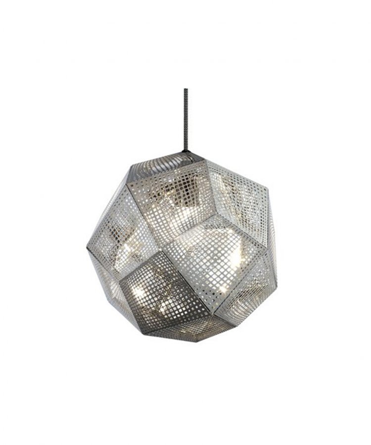 Design: Tom Dixon for Tom Dixon. Konsepti: Etch Teräs Riippuvalaisin Tom Dixonilta on jännittävä valaisin, josta kaikki puhuvat. Valaisimen juuret ovat 1980-luvun röyhkeässä perinteessä, jossa uudelleen käytetään materiaaleja, ja nämä juuret näkyvät selvästi tämän päivän valaisimissa. Dixonin omistautuminen innovaatiolle ja kehitykselle käy valaisimesta ilmi hyvin selvästi. Etch on Tom Dixonin luomus uraauurtavasta valaisimesta, joka tuo raikkaan tuulahduksen teollisuuteen, jossa on tullut tavaksi lainata muilta hieman liian paljon. Häntä inspiroi matematiikka, joka näkyy selvästi valaisimen geometrisessä muodossa.