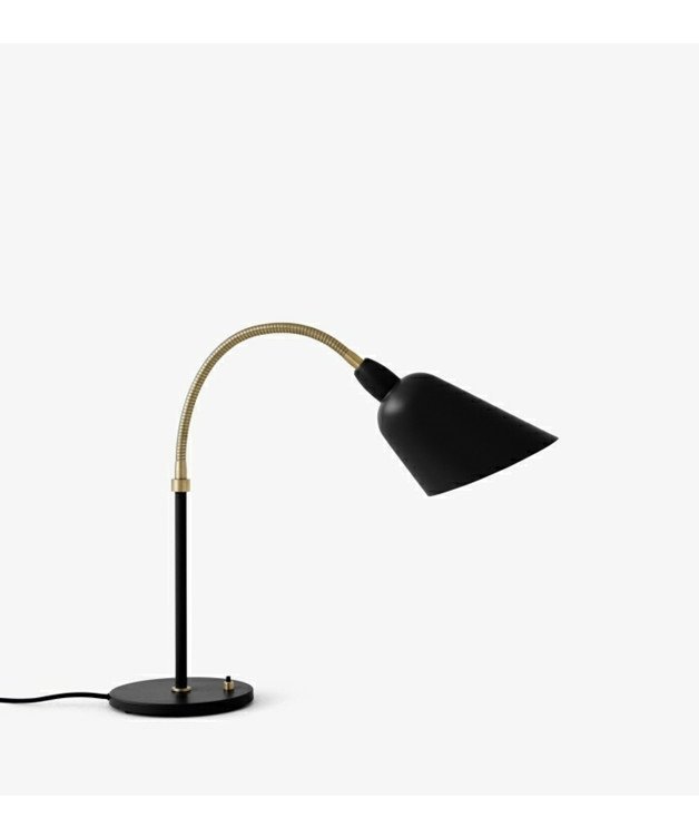 Design: Arne Jacobsen for &tradition. Konsepti: Arne Jacobsen suunnitteli Bellevue AJ8 pöytävalaisimen vuonna 1929. Se oli hänen ensimmäinen valaisinsarjansa. Valaisimen design ja tuotanto on napakymppi Bauhaus-kaudelta. Varjostimen 45 asteen leikkauskulma nähdään myös kuuluisalla Bellevuen bensa-asemalla (”Bellevue benzinstation”, rakennettu vuonna 1937, jonka on piirtänyt Arne Jacobsen). Bellevue-sarja on nyt saatavilla uusissa väreissä ja materiaaleissa, mikä tekee tuotteesta vielä modernimman. Tässä mustana messingin kanssa.