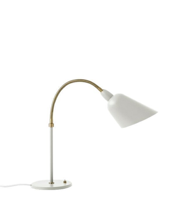 Design: Arne Jacobsen for &tradition. Konsepti: Arne Jacobsen suunnitteli Bellevue AJ8 Pöytävalaisimen vuonna 1929. Se oli hänen ensimmäinen valaisinsarjansa. Valaisimen design ja tuotanto on napakymppi Bauhaus-kaudelta. Varjostimen 45 asteen leikkauskulma nähdään myös kuuluisalla Bellevuen bensa-asemalla (”Bellevue benzinstation”, rakennettu vuonna 1937, jonka on piirtänyt Arne Jacobsen). Bellevue-sarja on nyt saatavilla uusissa väreissä ja materiaaleissa, mikä tekee tuotteesta vielä modernimman. Tässä norsunluun valkoisena messingin kanssa.