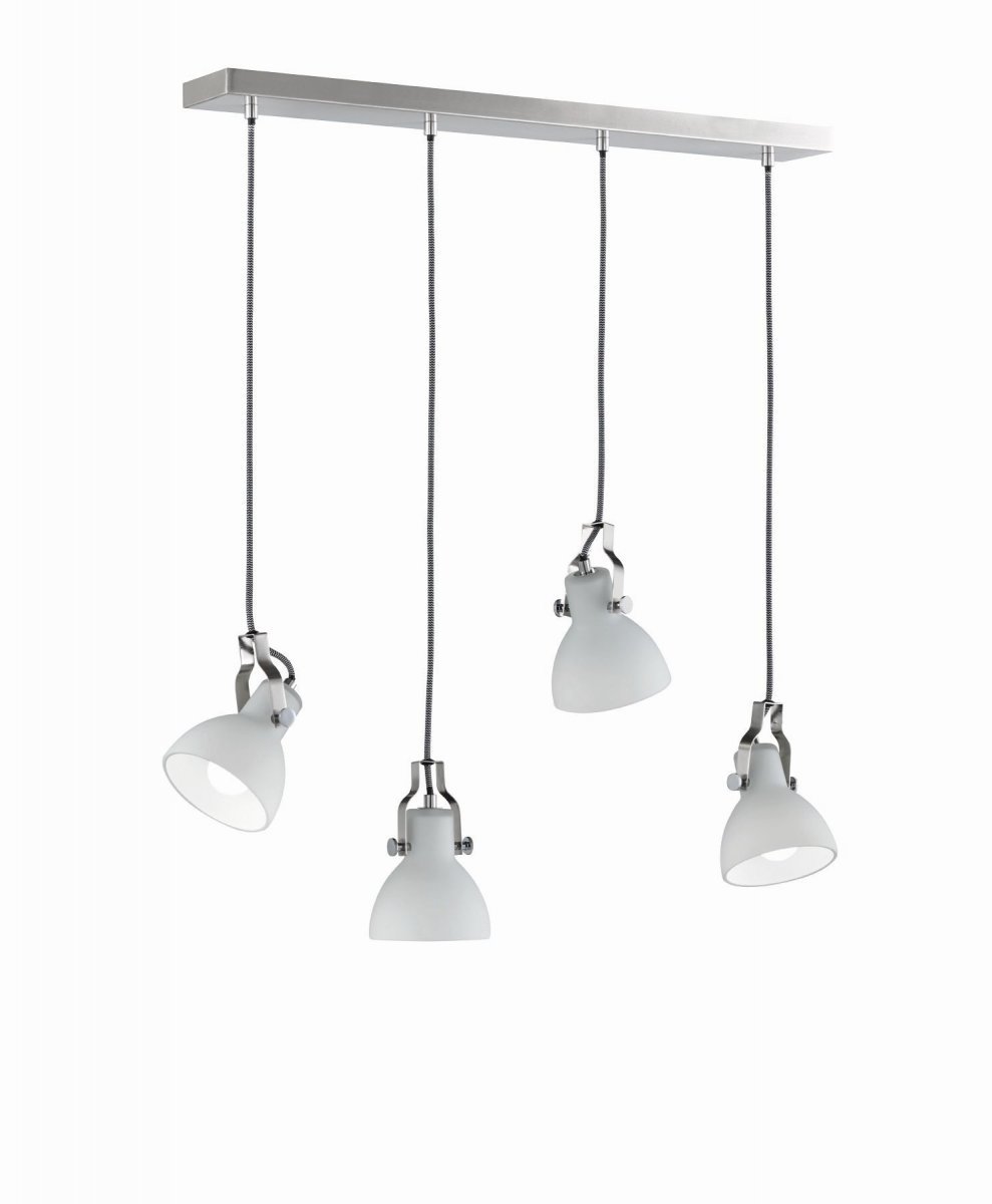 Ginelli riippuvalaisimen runko on harjattua terästä ja kupu valkoista lasia. Valaisimessa on neljä E14-kantaa, polttimot ei sisälly mukaan. Ripustuskorkeus 150 cm, leveys 70 cm ja syvyys 12 cm. Valaisin kiinnitetään kattoon kiinnitysraudalla, sähköistys sokeripalalla. •4xE14 max 28 W (polttimot ei sisälly mukaan) •Leveys 70 cm •Syvyys 12 cm •Ripustuskorkeus 150 cm •Runko metallia (harjattu teräs) •Kupu lasia (valkoinen) •Sähköistys sokeripalalla •IP20 •Energialuokka A++-E