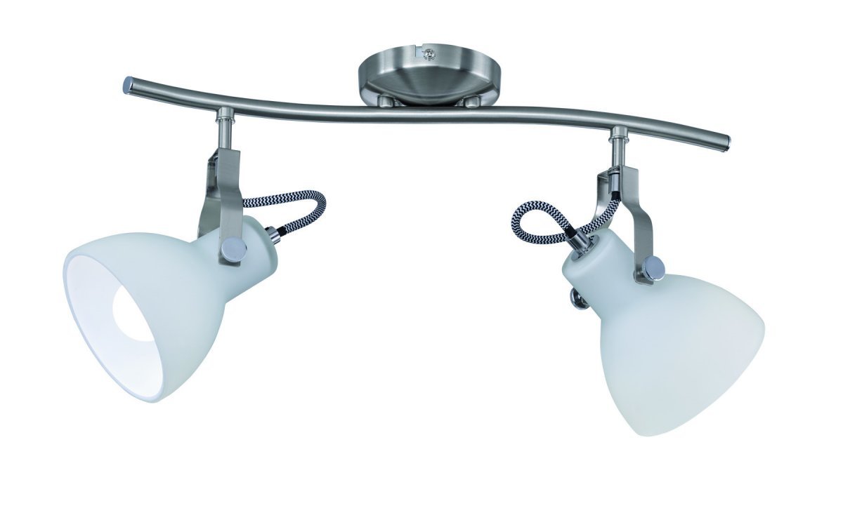Ginelli spotin runko on harjattua terästä ja kupu valkoista lasia. Valaisimessa on kaksi E14-kantaa, polttimot ei sisälly mukaan. Korkeus 22 cm, leveys 44 cm ja syvyys 12 cm. •2xE14 max 28 W (polttimot ei sisälly mukaan) •Leveys 44 cm •Syvyys 12 cm •Korkeus 22 cm •Runko metallia (harjattu teräs) •Kupu lasia (valkoinen) •IP20 •Energialuokka A++-E