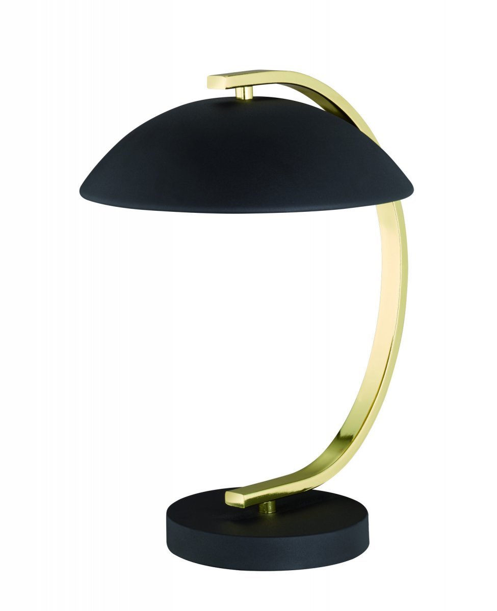 Retro pöytävalaisimen kupu ja runko on mattamustaa metallia. Runko on kultainen. Valaisimessa on E14-kanta, polttimo ei sisälly mukaan. Korkeus 35 cm, leveys 25 cm ja syvyys 29 cm. Liitosjohdossa on/off kytkin. •1xE14 max 40 W (polttimo ei sisälly) •Kupu ja runko metallia (mattamusta) •On/off kytkin liitosjohdossa •IP20 •Energialuokka A++-E