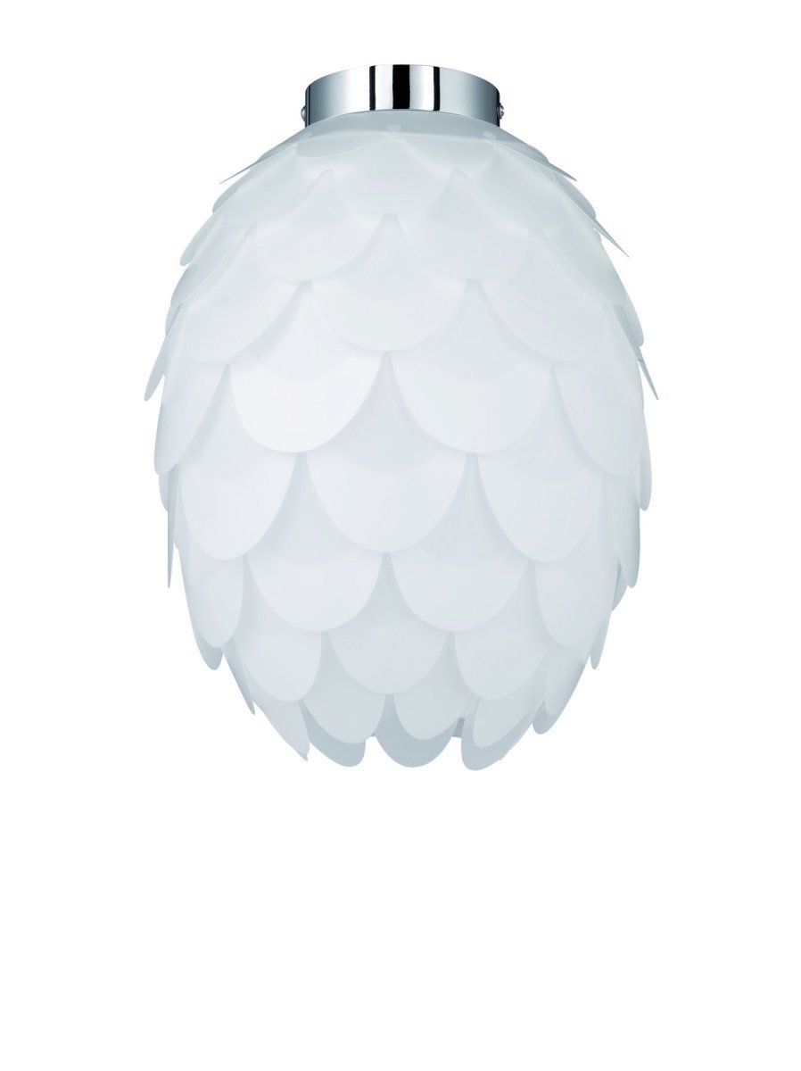 Choke kattovalaisimen kupu on hieman ovaalin muotoinen ja se on valmistettu valkoisista akryyli lehdyköistä. Halkaisija 30 cm ja kuvun korkeus 36 cm. Valaisimessa on E27-kanta, polttimo ei sisälly mukaan. Valaisin kiinnitetään kattoon kiinnitysraudalla ja kahdella ruuvilla, sähköistys sokeripalalla. Energialuokka A++-E.