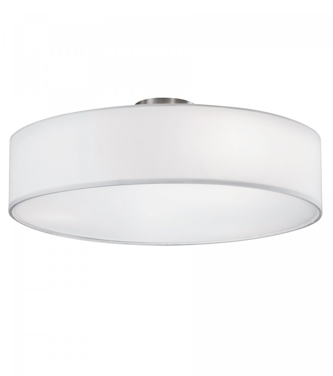 Pyöreässä Trio Round -plafondissa on luonnonvalkoinen kangasvarjostin sekä metallirunko. Tutustu Trio-valaisinvalikoimaan Hobby Hallissa!