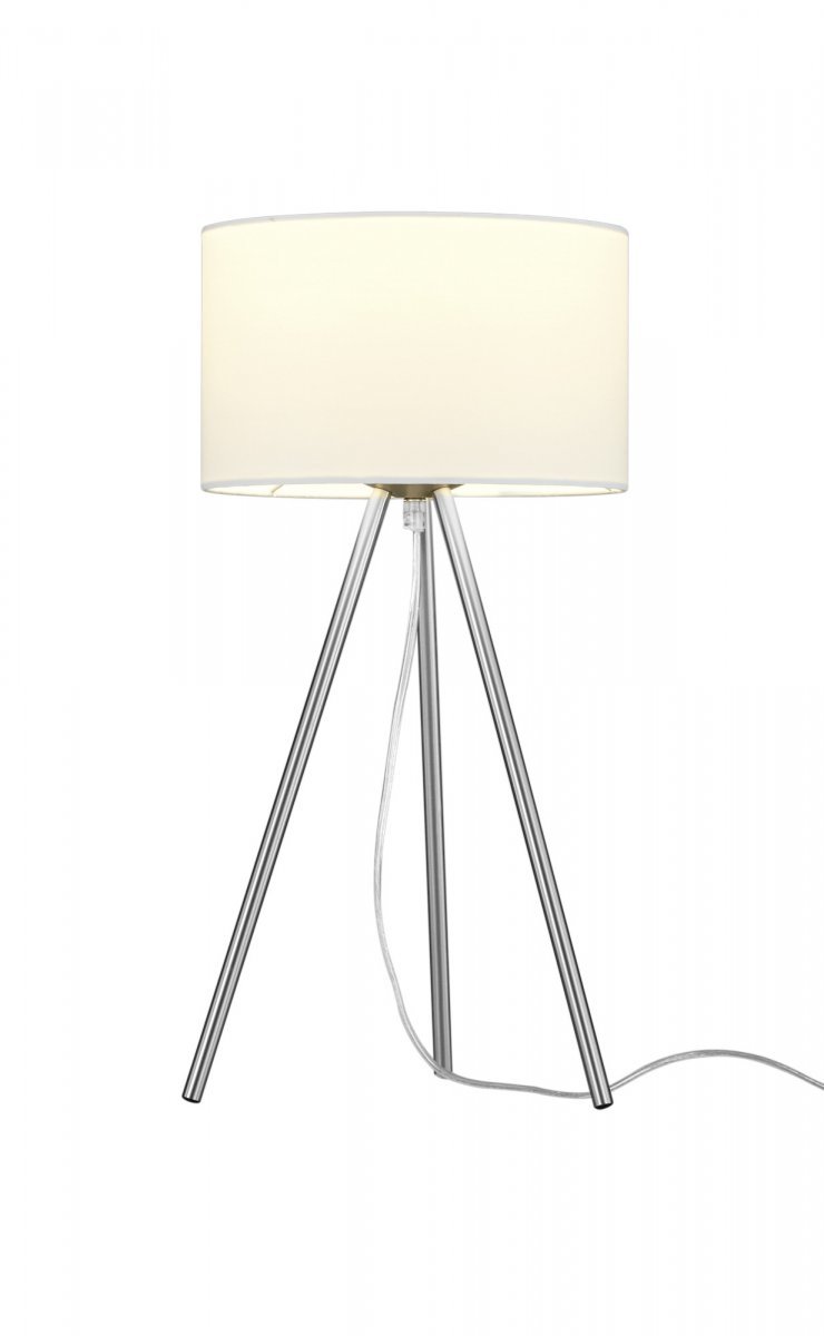 Tripolis pöytävalaisimen varjostin on kangaspintainen ja tukevat kolmehaaraiset jalat harjattua terästä.Läpikuultava johto, jossa kytkin. Valaisimessa E14-kanta, polttimo ei sisälly mukaan. Kuvun halkaisija 25 cm, valaisimen leveys 29 cm ja korkeus 50 cm. Energialuokka A++-E