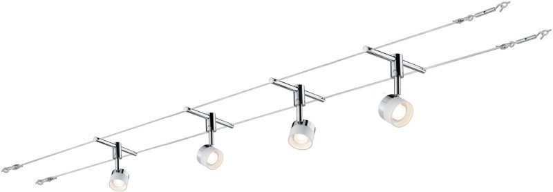 Vaijerivalaisinsetti Stage valkoinen/kromi 4 valaisinta + vaijeri 10 m + muuntaja