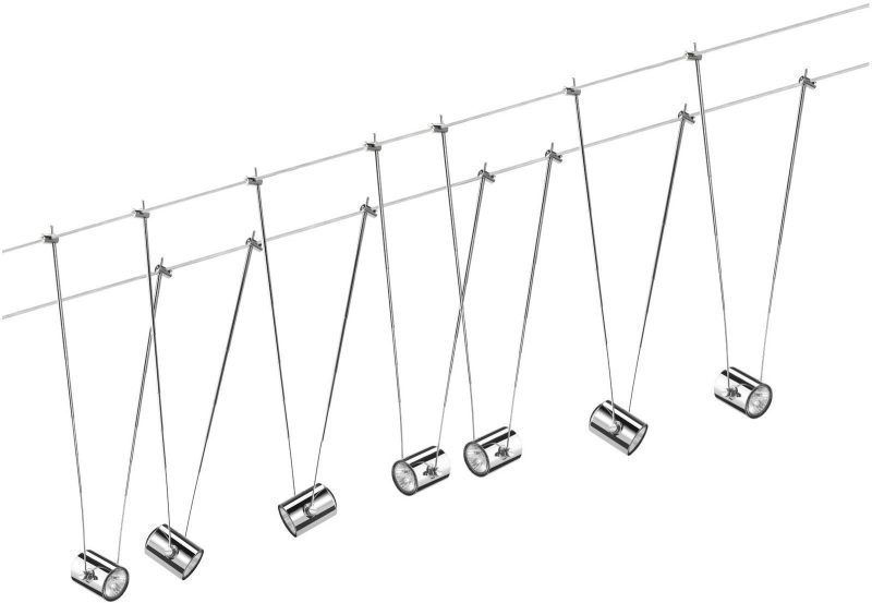 Vaijerivalaisinsetti TeleComet II kromi 7 valaisinta + vaijeri 12 m + muuntaja