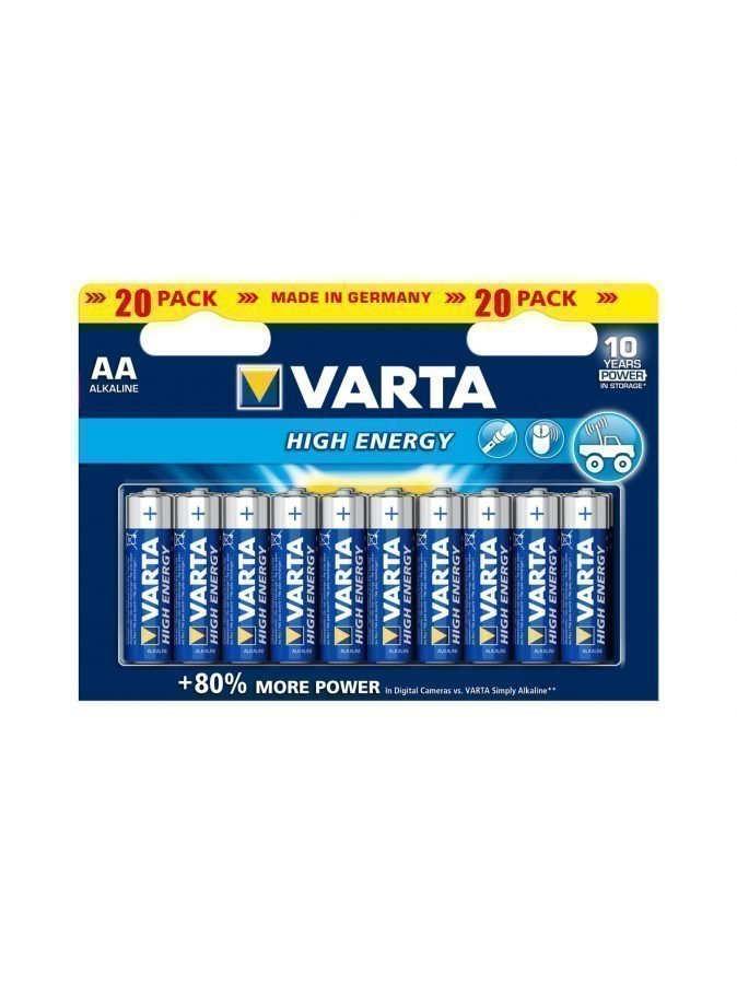 Pakkaus sisältää 20 kappaletta AA-paristoja.