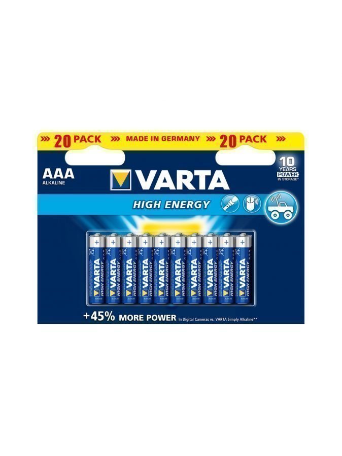 Pakkaus sisältää 20 kappaletta AAA-paristoja.