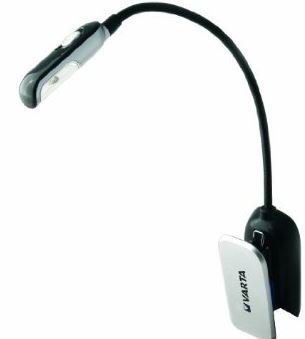 VARTA LED Book Light   A clip-on light for books and eReaders that every bookworm will love. The book light has a 15cm flexible swan neck that can be twisted in every direction to find the perfect position for illumination, putting an end to squinting at words in dimly lit surroundings. The light cuts an impressive figure thanks to its strong 5 mm cool white LED, a reliable, long-lasting source of lighting that couples brightness with low energy consumption. The appliance’s even distribution of illumination and wide scattering angle makes sure that readers will be able to spot every last clue in their latest crime novel. The VARTA LED Book Light has an integrated clip that can be used to attach the appliance quickly and facile to every kind of book and eReader, but it can also be used on other items such as clipboards. The user friendly on/off switch makes it easy to use the light even in dark surroundings. The lamp’s ideal combination of materials means it only weighs 36g including batteries, making it a real “light” weight! The book light comes with VARTA CR2032 button batteries which can power the light for up to 26 hours. The color combination of silver and black give the reading accessory a look of classic elegance that is guaranteed to appeal. DI 683473
