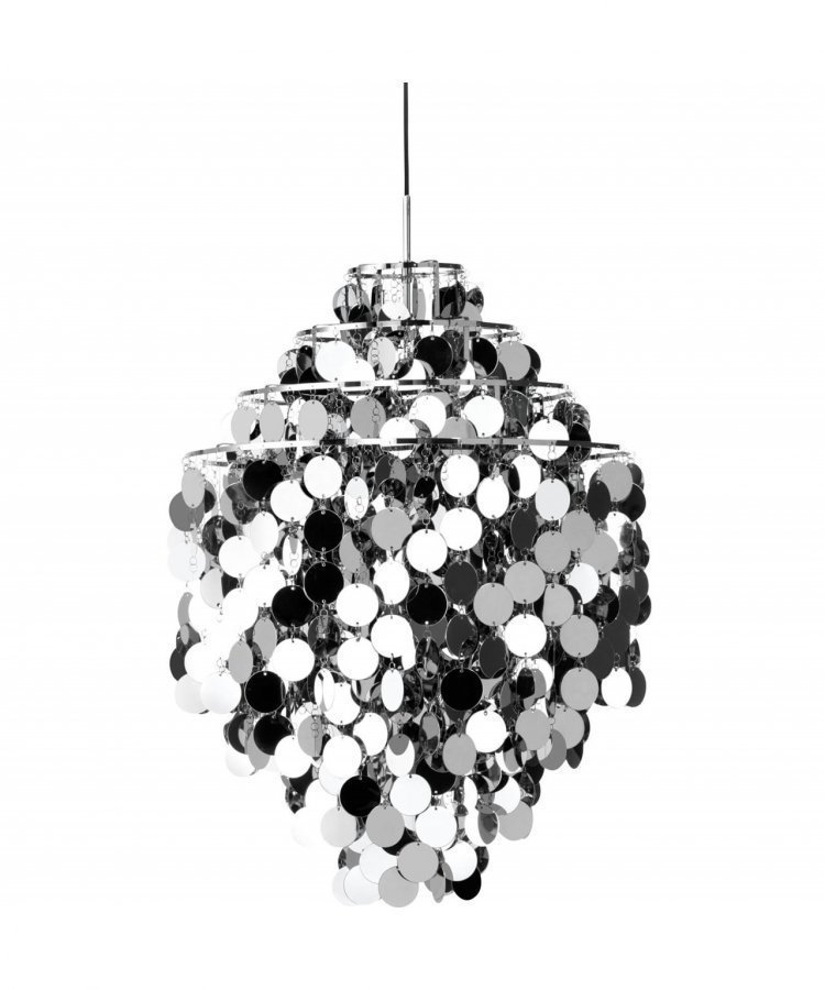 Design: Verner Panton for Verpan. Konsepti: Verner Panton suunnitteli FUN 0 DA-riippuvalaisimen vuonna 1964. Valaisin koostuu metallipoleteista, joita metallirenkaat kannattelevat. Näin valo leviää ihastuttavalla tavalla valaisimen ympärille. Verner Panton (1926-1998) on eräs Tanskan värikkäimpiä arkkitehtuuriin ja muotoiluhistoriaan liittyviä henkilöitä. Panton valmistui Kööpenhaminan taideakatemiasta vuonna 1995, ja tunnetaan voimakasvärisistä, orgaanisista tuotteistaan, sekä rakkaudestaan muoviin. Hän on saanut useita tunnustuksia epätavallisesta ja uraauurtavasta työstään.