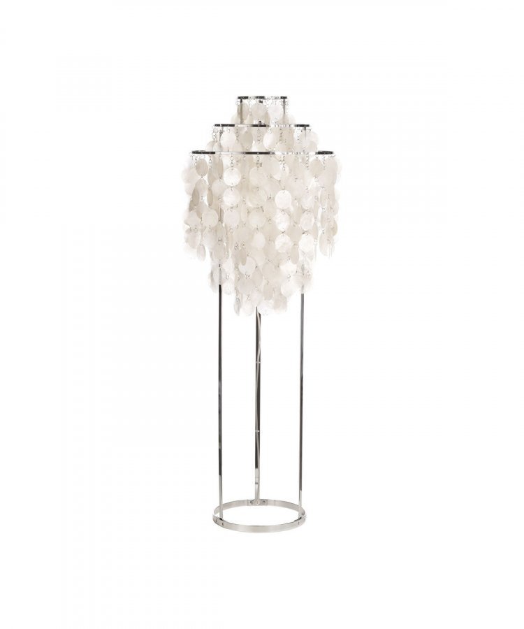 Design: Verner Panton for Verpan. Konsepti: Verner Panton suunnitteli FUN -valaisimen vuonna 1964. Valaisin koostuu helmiäiskuorista, joita metallirenkaat kannattelevat. Näin valo leviää ihastuttavalla tavalla valaisimen ympärille. Verner Panton (1926-1998) on eräs Tanskan värikkäimpiä arkkitehtuuriin ja muotoiluhistoriaan liittyviä henkilöitä. Panton valmistui Kööpenhaminan taideakatemiasta vuonna 1995, ja tunnetaan voimakasvärisistä, orgaanisista tuotteistaan, sekä rakkaudestaan muoviin. Hän on saanut useita tunnustuksia epätavallisesta ja uraauurtavasta työstään.