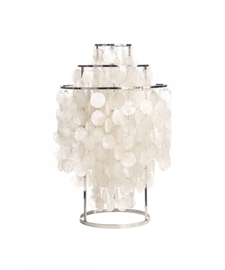 Design: Verner Panton for Verpan. Konsepti: Verner Panton suunnitteli FUN -valaisimen vuonna 1964. Valaisin koostuu helmiäiskuorista, joita metallirenkaat kannattelevat. Näin valo leviää ihastuttavalla tavalla valaisimen ympärille. Verner Panton (1926-1998) on eräs Tanskan värikkäimpiä arkkitehtuuriin ja muotoiluhistoriaan liittyviä henkilöitä. Panton valmistui Kööpenhaminan taideakatemiasta vuonna 1995, ja tunnetaan voimakasvärisistä, orgaanisista tuotteistaan, sekä rakkaudestaan muoviin. Hän on saanut useita tunnustuksia epätavallisesta ja uraauurtavasta työstään.