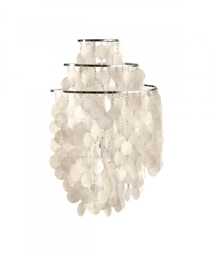 Design: Verner Panton for Verpan. Konsepti: Verner Panton suunnitteli FUN -valaisimen vuonna 1964. Valaisin koostuu helmiäiskuorista, joita metallirenkaat kannattelevat. Näin valo leviää ihastuttavalla tavalla valaisimen ympärille. Verner Panton (1926-1998) on eräs Tanskan värikkäimpiä arkkitehtuuriin ja muotoiluhistoriaan liittyviä henkilöitä. Panton valmistui Kööpenhaminan taideakatemiasta vuonna 1995, ja tunnetaan voimakasvärisistä, orgaanisista tuotteistaan, sekä rakkaudestaan muoviin. Hän on saanut useita tunnustuksia epätavallisesta ja uraauurtavasta työstään.