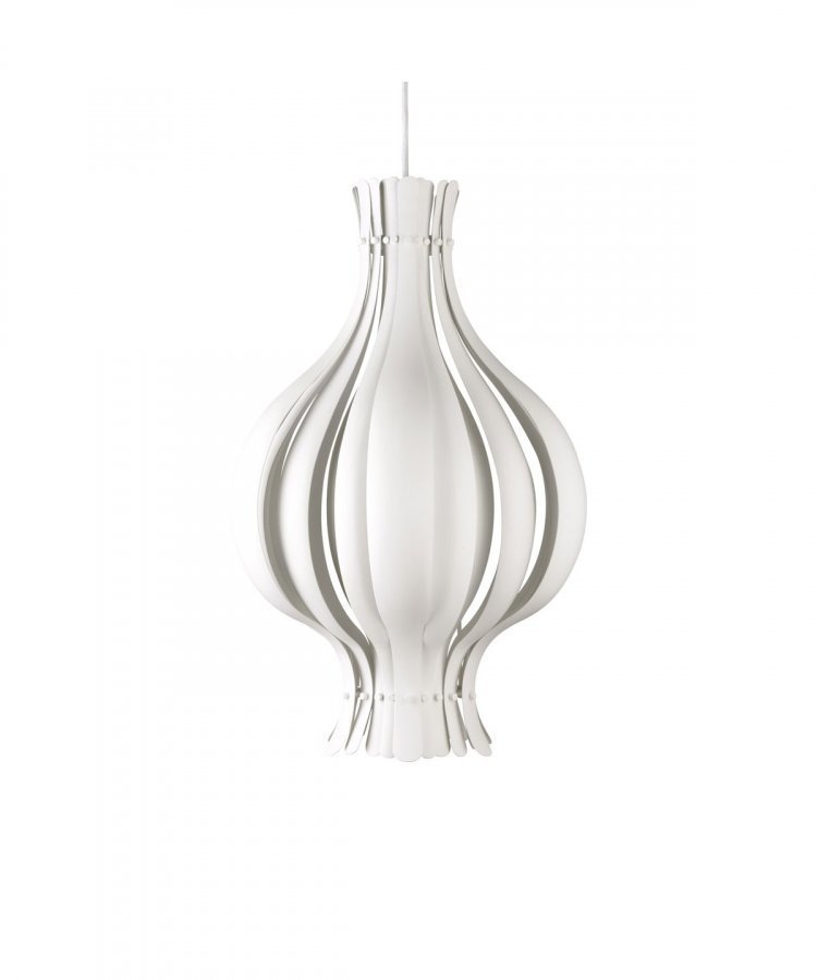 Onion Small Riippuvalaisin Valkoinen. Kaunis riippuvalaisin, joka luo kauniin ja loistokkaan valaistuksen. Voit ripustaa valaisimen ruokapöydän ylle, olohuoneeseen tai kenties makuuhuoneeseen. Riippumatta siitä, mihin valaisin sijoitetaan, saat klassisen lookin modernilla ilmeellä!