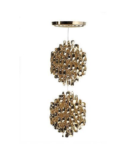 Design: Verner Panton for Verpan. Konsepti: Verpanin Spiral -sarja on Verner Pantonin näkemys järjestyksestä kaaoksen keskellä. Kattovalaisin riippuu spiraaleina kaikessa rauhassa ja hiljaisuudessa. Se ei ainoastaan levitä huoneeseen miellyttävää valoa vaan luo tilaan aivan erityistä, hienostunutta energiaa. Spiral SP2 Kulta on taideteos itsessään.