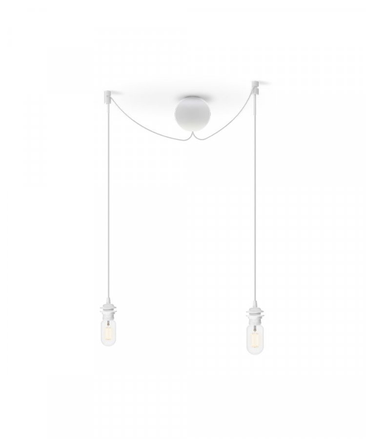 Design: Soren Ravn Christensen for Vita. Konsepti: Silikoninen kattokupu, jonka voit asentaa riippuvalaisimeesi. Voit piilottaa johdonpäät suojuksen sisäpuolelle, ja kaunis pyöreä muoto viimeistelee valaisimesi ilmeen upeasti. Fiksu suojus mahdollistaa kahden valaisimen samanaikaisen ripustamisen. Saatavilla kahdessa värissä, joista tässä näkyvillä valkoinen. Molemmat johdot ovat kumpikin 2,5 metriä pitkät.