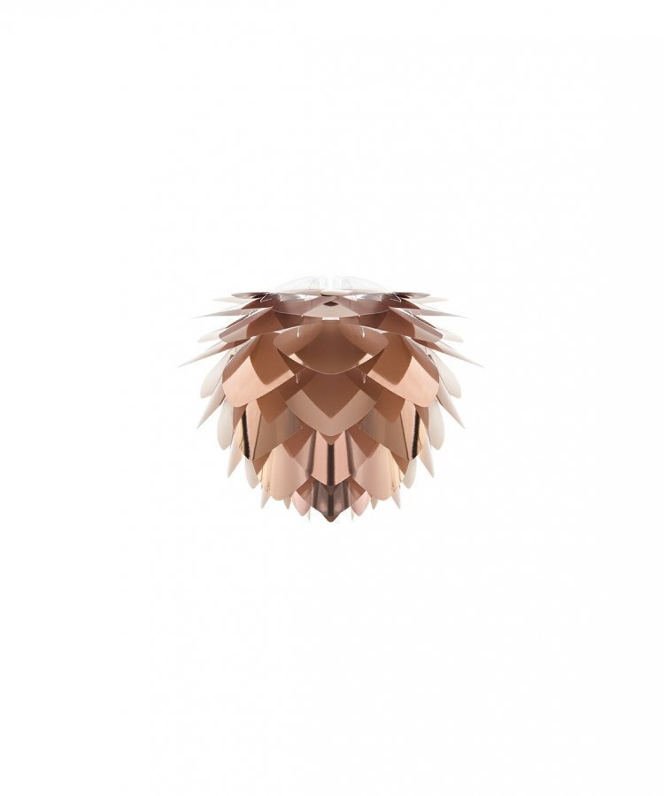Design: Søren Ravn Christensen for VITA. HUOM – Tämä on ainoastaan varjostin, ei siis kokonainen valaisin. Konsepti: Vitan Silvia Mini -varjostin kuparisena on moderni, jokaiseen kotiin sopiva klassikko, jota luonnehtivat kauniisti kerroksittain laskostetut lehdet. Silvia sopii hyvin pöydän yläpuolelle, halliin, makuuhuoneeseen. minne tahansa. Lamppu ei näy varjostimen sisältä ja siksi voit ripustaa valaisimen juuri siihen korkeuteen, johon se huoneessa sopii. . Varjostinta saa seuraavissa väreissä: Kupari, kulta, teräs, valkoinen, sekä kultasisuksinen musta. . Voit koota valaisimen juuri kuten haluat, joko yhdistämällä pöytästatiivin, lattiajalkaan, tai ripustimeen. Löydät lisäosat täältä.