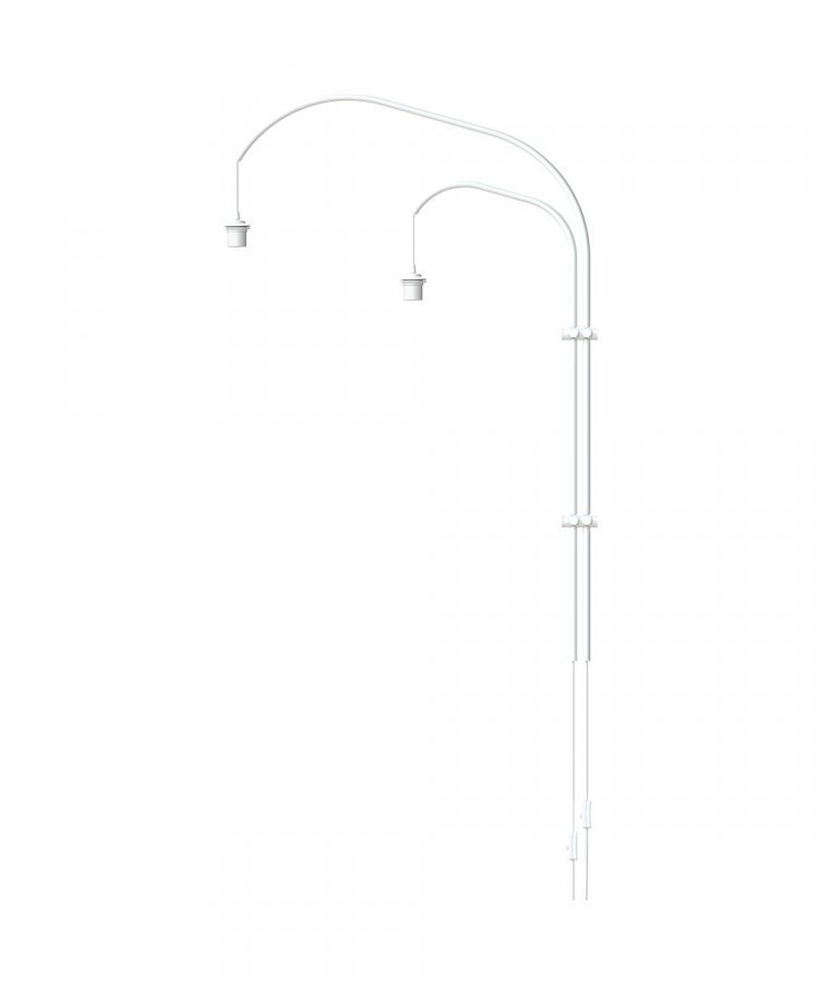 Design: Soren Ravn Christensen for VITA. Konsepti: Willow -seinästatiivi on käytännöllinen statiivi, joka mahdollistaa lamppujen ripustamisen erilaisiin asentoihin. Voit asettaa valaisimen juuri sinne ja sillä tavalla kuin itse haluat. Statiivia on saatavilla kahdessa värissä, joista tässä nähtävillä on valkoinen malli ja tuplaversio. Mukaan kuuluvat E27 -pistoke, sekä tekstiilipäällysteiset johdot.