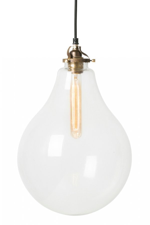 Droppe-kattovalaisin, jossa vanhan ajan hehkulampun henkeä. Riippuva pisaranmuotoinen kupu suupuhallettua kirkasta lasia. Ripustusjärjestelmä mukana. Laita Droppe-valaisimeen putkimallinen hehkulamppu (lamppu ei ole mukana). Korkeus 41 cm, halkaisija 27 cm. Johdon pituus 200 cm. Iso lampunkanta, E27.