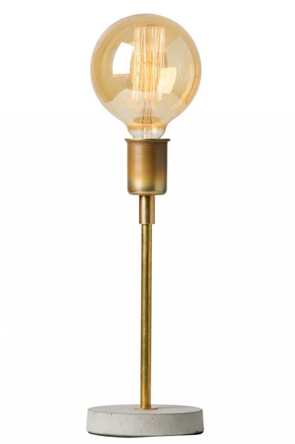 Hugo table small -lampunjalka raakamessinkiä. Pohjalevy betonia. Lampunjalkaa oi käyttää näyttävällä lampulla varustettuna ilman varjostinta tai kivan varjostimen kanssa. Metallikuppia voi säätää korkeussuunnassa. Raakakuparinvärinen tai messinginvärinen. Korkeus: 33. Halkaisija: 13 cm. Lamppu ei mukana. Iso lampunkanta, E27.