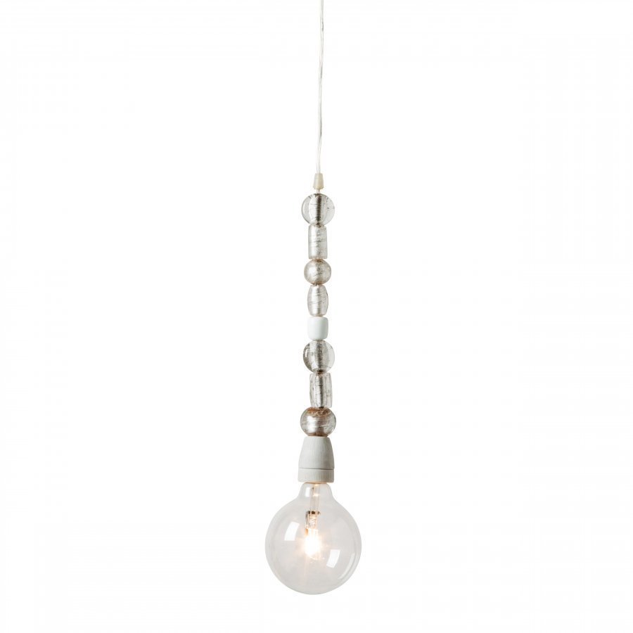 Watt & Veke -malliston valkoinen kattovalaisin, jonka johdossa koristeellisia lasisia yksityiskohtia n. 50 cm alueella. Kattoa vasten oleva suojus valkoista muovia. Lamppu myydään erikseen. Kanta E27. Max 40 W. Saatavana vain verkkokaupastamme.