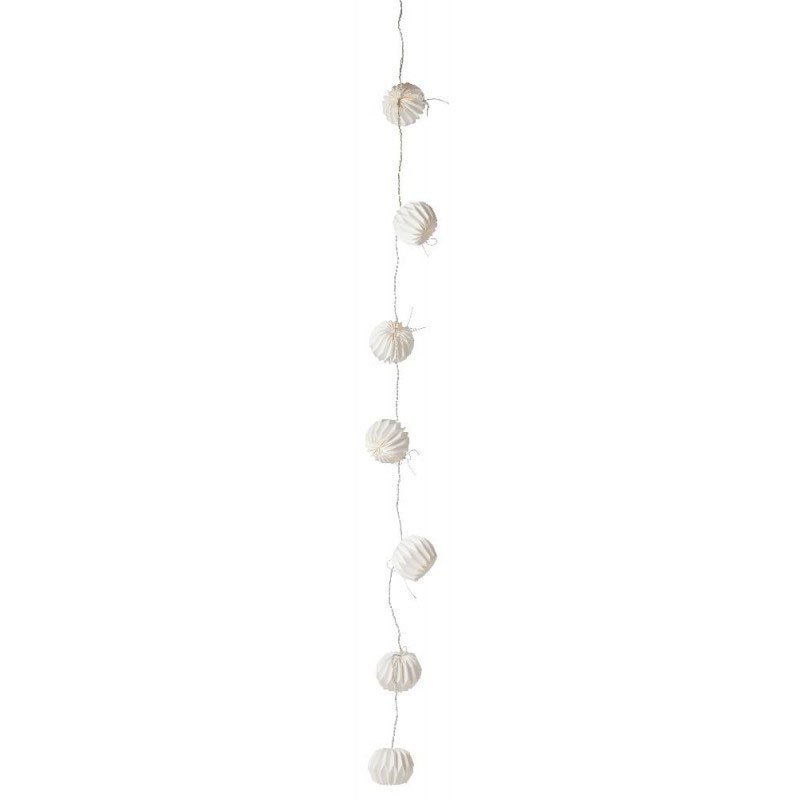 Valoketju jossa 10 käsintaitettua paperikoristetta. LED valoketju saa virtansa kolmesta 1.5V AAA-paristosta.