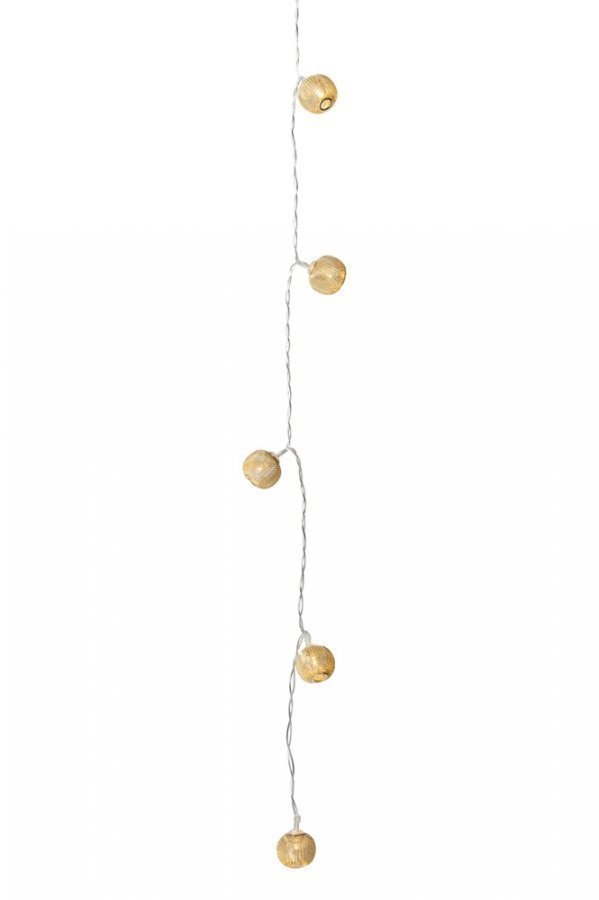 Moderni, mutta perinteisiä muotoja toistava valoköynnös, jossa 10 metallisomisteista lamppua. Laita valoköynnös vaikkapa kirjahyllyyn tai pöydälle. Ajastintoiminto. 10 LED-lamppua 1,3-metrisessä köynnöksessä. 30-senttinen johto paristoyksikköön. Toimii kolmella AA-paristolla (paristot eivät ole mukana). Pituus: 130 cm.