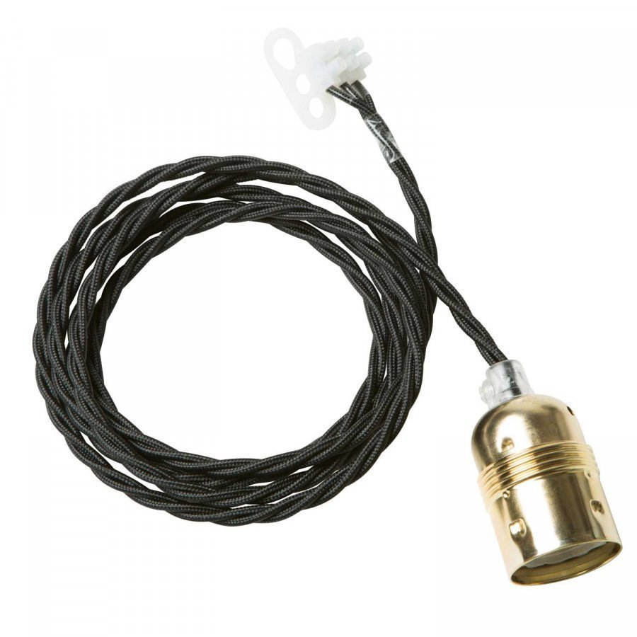 Twisted johto, Watt & Veke Tyylikäs ja yksikertainen johto koristeelliselle hehkulampulle tai varjostimen roikuttamiselle. Lampun sokkeli on messinkipinnoitettua metallia ja siinä on 2 metrinen punottu tekstiilijohto. Pistoke tai kattokuppi ei kuulu toimitukseen. Sokeripala kiinni johdon kiinnikkeessä.