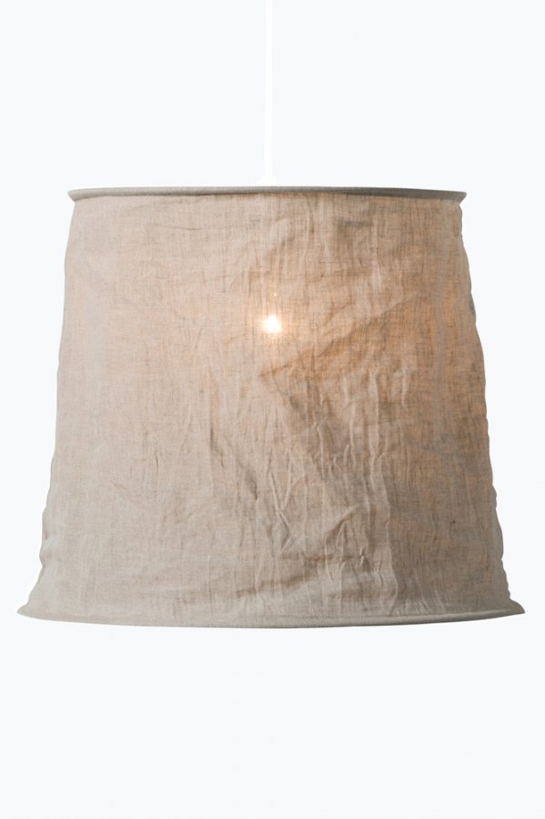 Vivianne-varjostin kivipestyä pellavaa, jossa ryppyefekti. Varjostimen voi kääntää ylösalaisin, joten sitä voi käyttää niin pöytä- tai lattiavalaisimen varjostimena kuin riippuvan kattovalaisimen varjostimenakin. Korkeus 32 cm, halkaisija 42 cm. 100% pellavaa