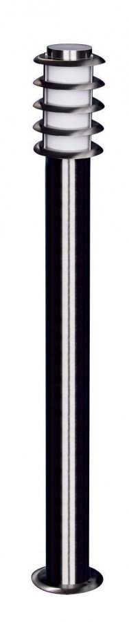 Bungalow Steel pylväsvalaisin. – runko ruostumatonta terästä, kupu muovia – korkeus 100 cm – lampunkanta E27, max. 15 W energiansäästölamppu – ulkokäyttöön, suojausluokka IP44